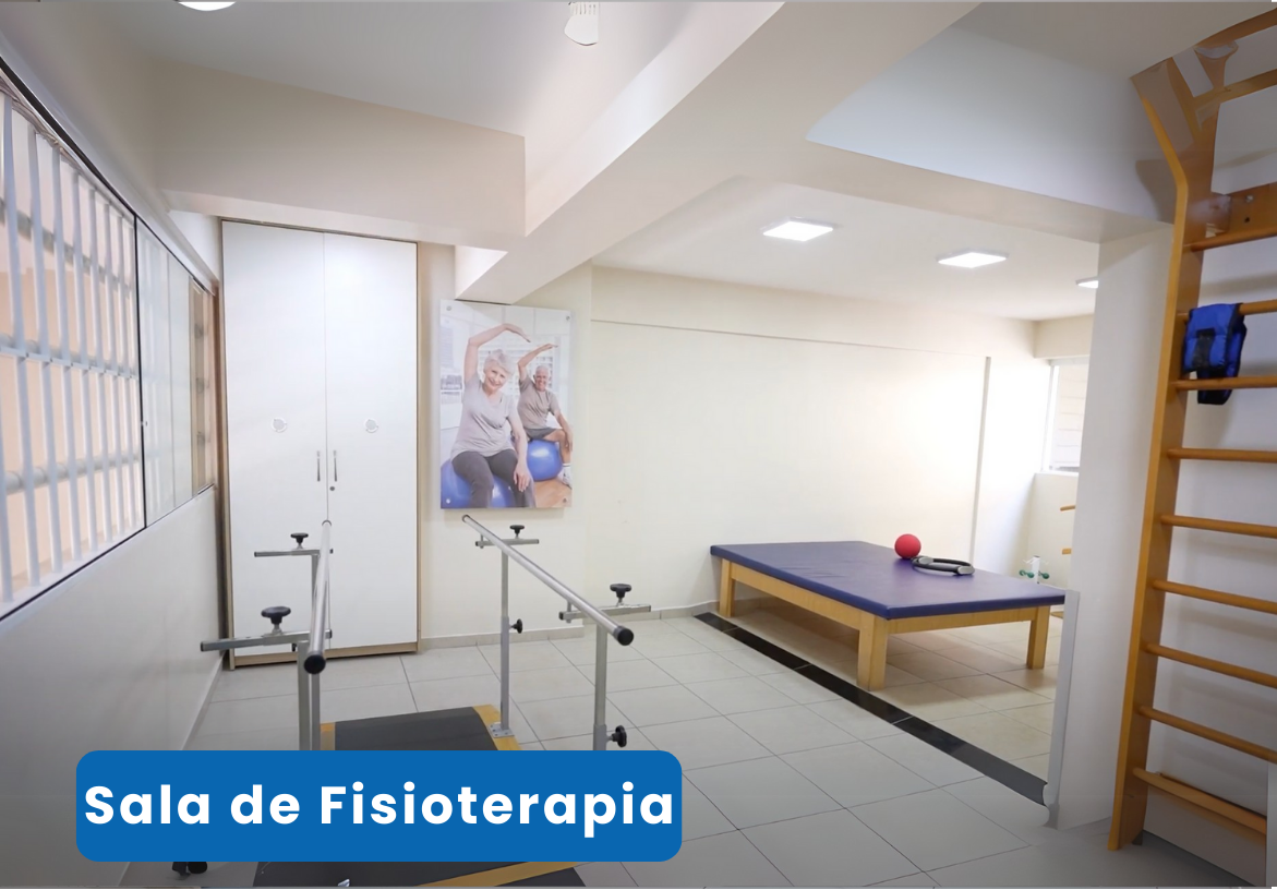 Contamos com uma sala completa de Fisioterapia, com equipamentos modernos, para o idoso que precisa se exercitar com acompanhamento ou fazer reabilitação da sua mobilidade.