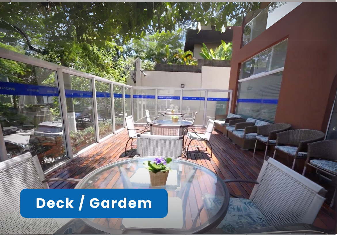 Na Casa de Repouso Pró-vita, possuímos diversas áreas de lazer e atividades, como o nosso Deck para receber os familiares e nossos Pátio com jardim para tomar um solzinho pela manhã.