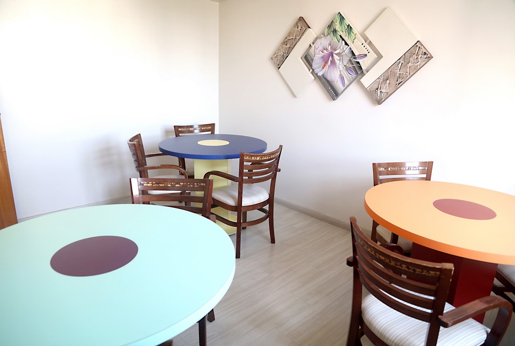 Nossas Salas de Estar e de TV são amplas e arejadas, equipadas com aparelhos de Televisão, sofás e poltronas confortáveis. Com mesas e espaços para jogos, eventos de música e terapia ocupacional.